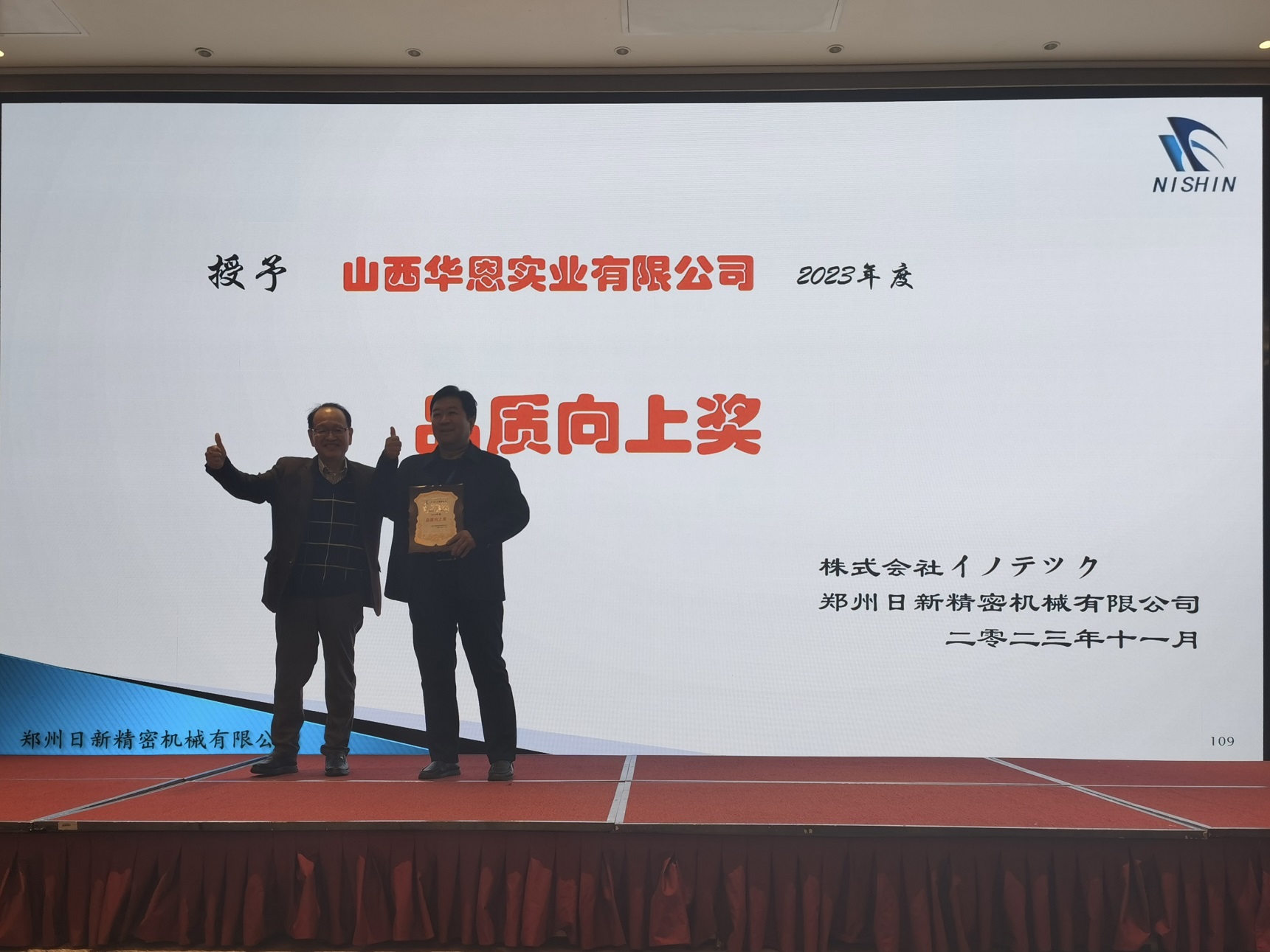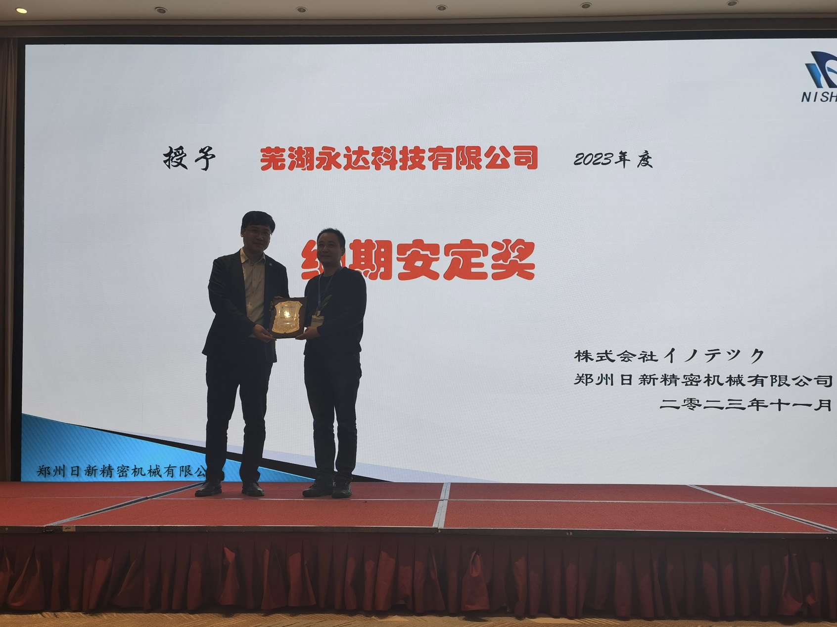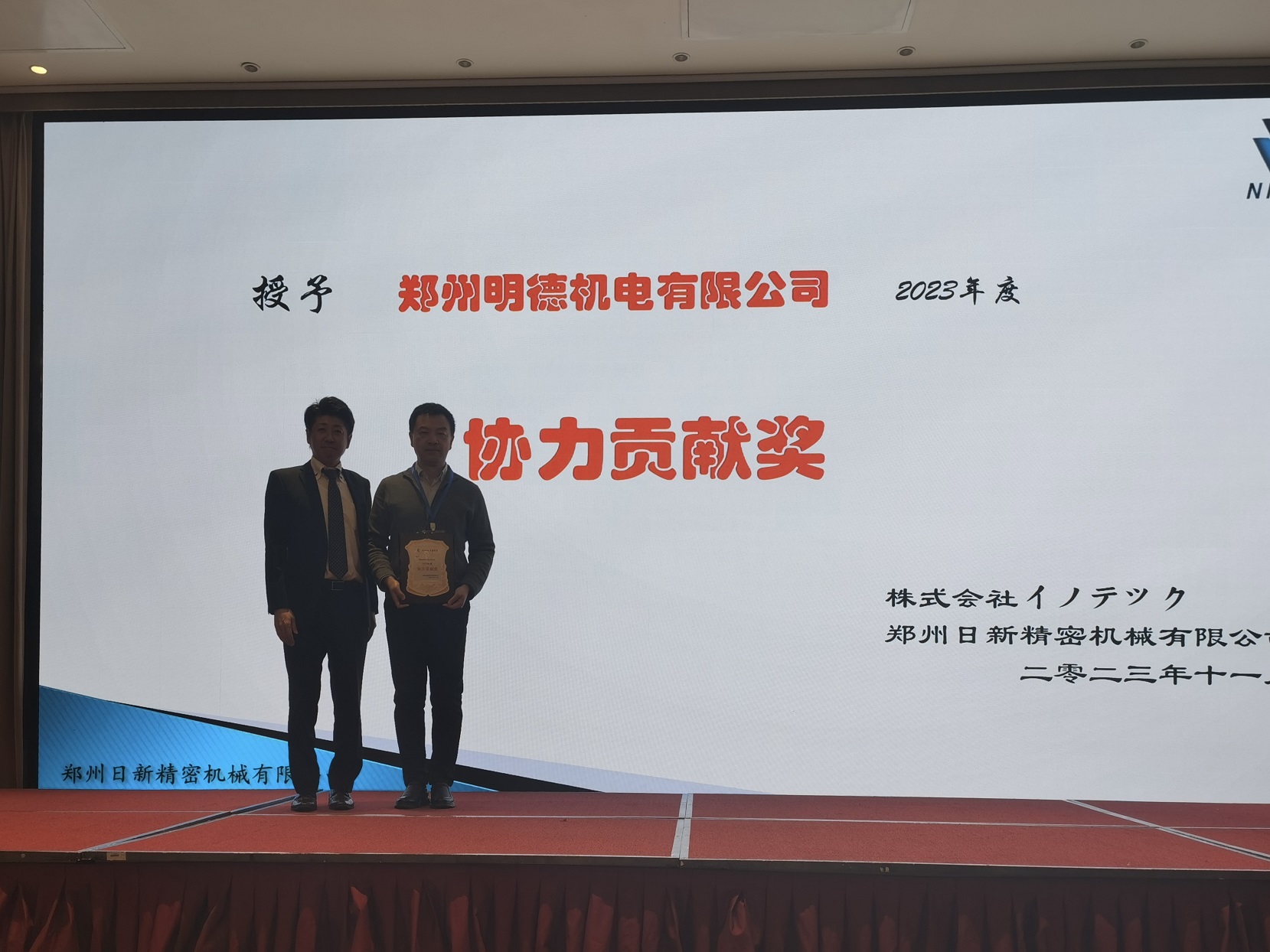2023年11月17日下午3点,“2023年合作企业年会”在中州假日酒店正式开始。本次年会共邀请合作企业30家,共计55人参加。其中设立了4个合作企业奖项,分别是:优秀供应商奖,协力贡献奖,纳期安定奖和品质向上奖。最后由山东裕隆金和精密机械有限公司和河南广瑞汽车部件股份有限公司获得了年度“优秀供应商”奖项。